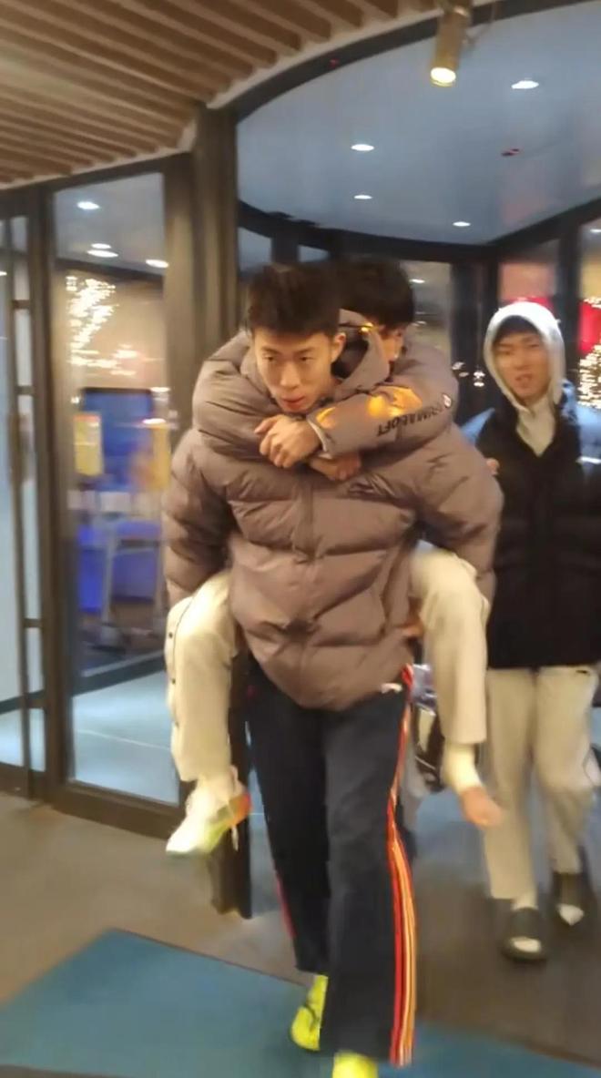 徐杰的这次受伤看着实在太吓人了。当时周琦被萨姆纳绊倒,整个人失去平衡,直愣愣地往徐杰身上撞。比赛直播的时候看不太清楚,只看到徐杰是被周琦撞到了膝盖和腿部,大家都认为徐杰是膝盖受伤了。但慢镜回放能观察到,其实徐杰倒下后一直在捂住自己的脚踝,后面被队友背着离场时,膝盖和腿部没有明显反应,倒是脚踝下意识地回缩了一下,证明确实是脚踝扭了一下。这下还要感叹一下,赵睿和胡明轩真的是好兄弟,看到徐杰受伤后第一时间凑上去关心,赵睿还直接喊来了广东队医,三人的关系确实很好。