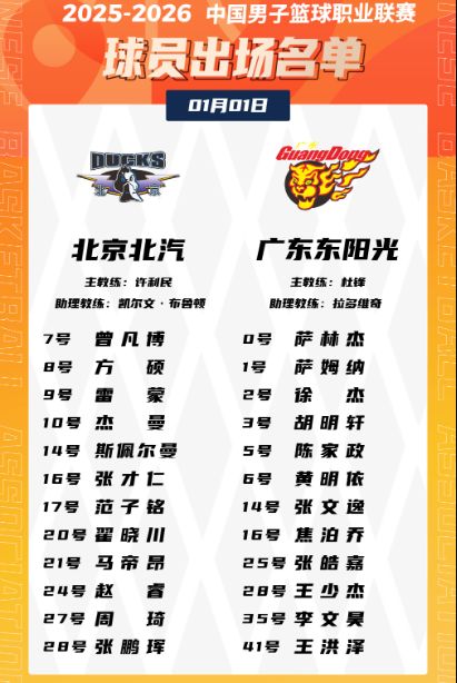 - 2026年01月01日 北京31分大胜送广东赛季首败 徐杰上半场伤退 曾凡博首秀18分