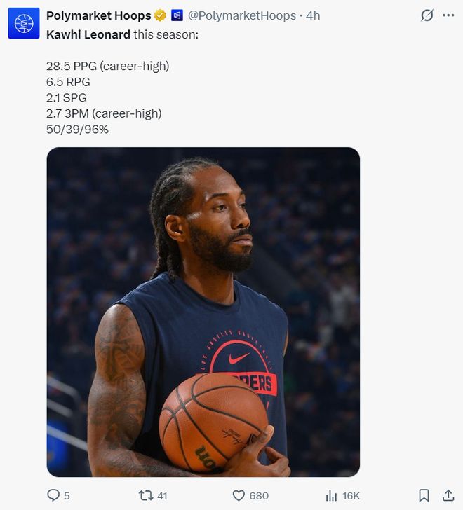 8.最近6场比赛场均39分,命中率53.3/44.1/93.5,他成为利拉德后第二位达成这样数据与命中率的球员。