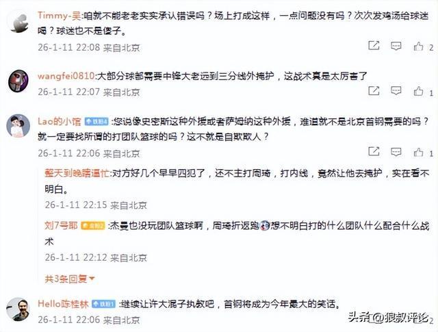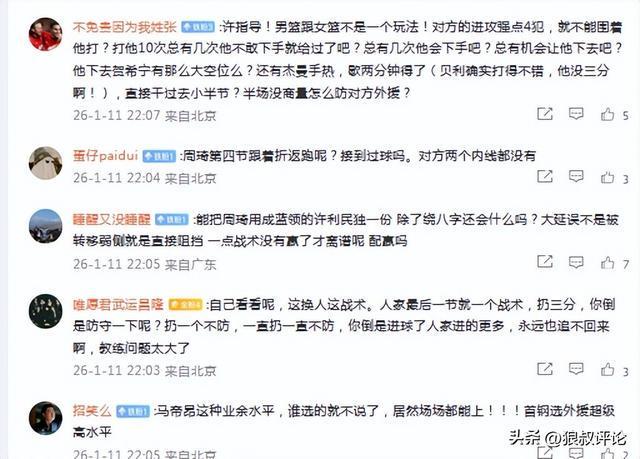 球迷狂刷官媒的评论区,从主帅的人员轮换,再到周琦的出场时间,以及全队的防守问题,各方面都很难达到争冠行列。