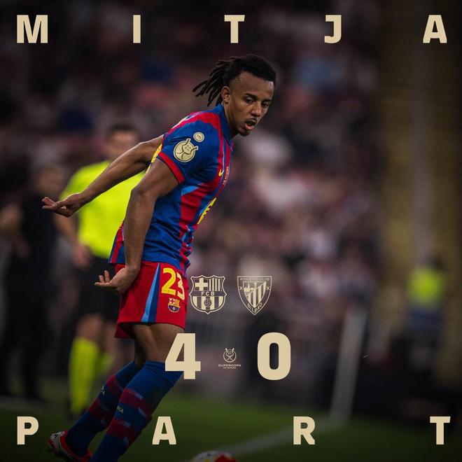 2026西班牙超级杯半决赛,巴塞罗那对阵毕尔巴鄂竞技,半场战罢,巴萨4-0领先对手,据统计,这是西班牙超级杯历史上半场最大分差。
