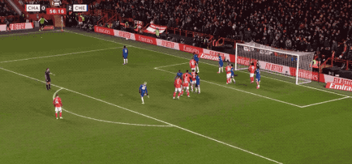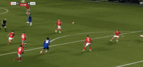 第34分钟,切尔西在前场连续一脚传球,阿昌庞的远射力量十足,门将奋力将球扑出。